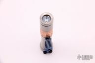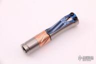 This Hoku flashlight from Mitch Lum/Laulima Metal Craft and Joshua Dawson features a titanium and copper body. 219CUK emitter.   Reflector optic.  Takes a single 10440 battery. This piece comes with a custom pouch and original info card, dated 10/13/21.  DOES NOT INCLUDE BATTERY. New from maker.
