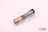 This Hoku flashlight from Mitch Lum/Laulima Metal Craft and Joshua Dawson features a titanium and copper body. 219CUK emitter.   Mule optic.  Takes a single 10440 battery. This piece comes with a custom pouch and original info card, dated 10/13/21. DOES NOT INCLUDE BATTERY. New from maker.
