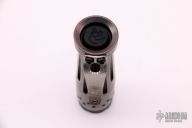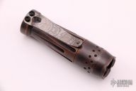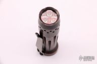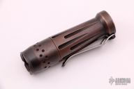 This Starfall Flashlight is a collaborative effort between Joshua Dawson and Mitch Lum. It features copper construction with dimpling and fluting.  Black rubber clicky switch on tail cap. Includes a padded slip case by Dragoncut Design. Specs: Driver -Amber Dragon.  Emitter: 219C 4000K. Optic: Carclo with glow optic. Window: Flat Sapphire Watch Glass. Battery: Single 18350 (Not Included).  New from the maker.