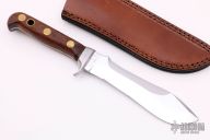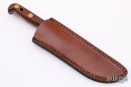 This Vintage White Hunter by Puma is the ultimate outdoorsman’s knife, originally designed by African professional hunters. It features a curved blade for cutting, slicing and skinning and a strong back edge for hacking. Handmade by skilled craftsmen with wood scales. Comes with a brown leather sheath (not original). Has some scratches, otherwise excellent condition. #42606 on guard.