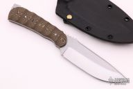 This 3rd Force Combat Knife by Doc Shiffer features a satin finished blade with notched thumbrest, .146" blade stock and 1.582" blade depth, full tang construction with Richlite scales and stainless steel pins. Comes with a leather lined kydex sheath with belt loops. Comes with a COA dated 10-1-21. New from maker.