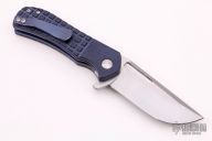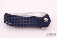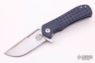 This Recon Flipper by Doc Shiffer features a satin finished blade with thumbhole, flipper and notched thumbrest. The handle has frag pattern blue Richlite scales with red G-10 liners, anodized titanium liners, anodized titanium tip up clip. Rides on bearings, nice detent, lockup and blade seating. Comes with a COA dated 10-7-21. New from maker.