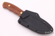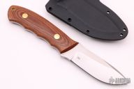 This K-19 Pro Skinner by Dozier Knives features a satin finished blade with .137" blade stock and 1.157" blade depth, full tang construction. The handle has natural canvas micarta scales with brass pins and lanyard hole. Comes with kydex sheath with belt loop. New from maker.