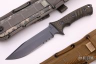 "Continuing the proud tradition of Chris Reeve Knives honoring elite military, the Reeve/Harsey collaboration - the Pacific - is the civilian version of a knife created to celebrate the 50th Anniversary of 1st Special Forces Group. Based in Ft. Lewis, WA, 1st Group's theatre of operations is Asia and the Pacific, so the name Pacific has been chosen to honor the home and work place of these fine soldiers." Comes with camo nylon Spec-Ops sheath and an FDE nylon Spec-Ops sheath. Has a little bit of wear on the blade finish, has been lightly resharpened, otherwise good condition.