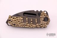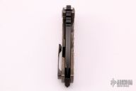This Genesis TI from Medford Knife and Tool features a two tone finished drop point blade with fuller, high satin polish bevel, notched thumbrest and dual thumbstuds. The handle has a carved titanium frame over a D2 backspacer/glass breaker, anodized titanium tip up clip. Great blade seating, detent and lock up. Includes Medford box, papers dated AUG 08, 2019 and hard case. Excellent condition.