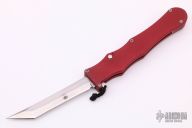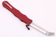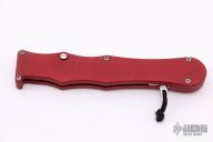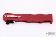 This Mayhem OTF by Rob Dalton features a satin finished upswept tanto blade. The handle is red anodized and milled aluminum with charging tab, tip down titanium clip. Some minor rub marks on blade, light scuffs on the handle, otherwise excellent condition.