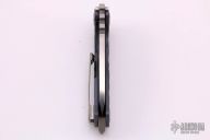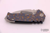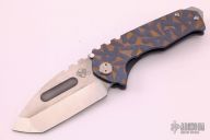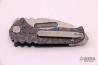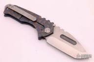 This Praetorian Genesis T from Medford Knife and Tool features a tumble finish and satin bevel drop point, tanto style blade with fuller, notched thumb rest and dual thumb studs. The handle has a satin finished sculpted titanium frame over a D2 backspacer/glass breaker. Satin titanium tip up clip. Great blade seating, detent and lock up. Includes Medford box, papers and hardcase. Excellent condition.