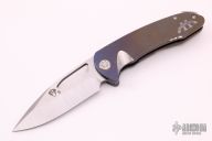 This On Belay by Medford Knives features a tumble finished spear point blade with thumbhole and notched flipper. The handle has a tumbled and fade anodized titanium frame with stainless steel backspacer with lanyard hole, tip up stonewashed titanium clip. Comes with original box and papers. Excellent condition.