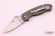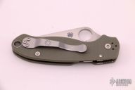 This Para 3 by Spyderco features a satin finished clip point blade with thumb hole and notched thumbrest. The handle is comprised of G10 scales over nested steel liner and stand-offs. The steel pocket clip is 4 way adjustable. Includes original box and paperwork. Excellent condition.