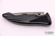 The handle is black aluminum with rayskin inlay. Black blade. Comes with original box and papers. SHIN #431. Excellent condition.