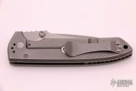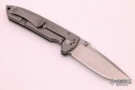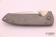 This Project VECP by Les George features a tumble finish CNC flat ground blade and a tumble finish titanium frame with matching tip up clip. Hinderer lock bar stabilizer. Phosphorus bronze washers. Smooth action. Notched black G10 backspacer. Excellent blade seating, detent and lockup. Excellent condition. Includes a box.