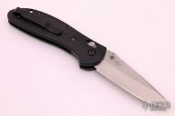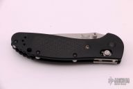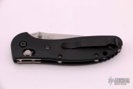 This Griptilian by Benchmade features a stonewashed drop point blade with dual thumb studs and notched thumb rest. The handle is comprised of black paper micarta scales, stainless steel sub frame and barrel spacers. The black coated, deep carry stainless steel tip up clip is reversible for right or left hand carry. Excellent condition. Comes with original box and papers. Discontinued Knifeworks Exclusive.