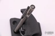 "I am a folder maker. While there will always be the occasional fixed blade, folders are my passion. The steels I enjoy working with include CPM154, ATS-34, 440C, S30V, and Stainless Damascus from Devin Thomas. All of the metal parts on my knives that can be Titanium are Titanium including frames, liners, thumbstuds, bolsters, clips and spacers. Pretty much everything except for the blade. I often anodize a substantial portion of my titanium, and can get a deep green that few makers succeed at. As far as handle materials go, I mostly use Carbon fiber, G10, or Micarta. I use large bronze pivot bushings in all of my folders, and either Nylatron or Bronze washers. All of my parts are made in-house except the screws. I have an old Bridgeport Mill, an older Logan Lathe (1943), a Hardcore grinder, and various other tools, lots of them made by myself. I also do all of my own Heat treating in an EvenHeat Oven." My knives have won several major awards, including Best Tactical Folder at the Blade Show 2011.
