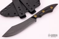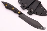 The Ratatosk features an aggressive 5.5" hybrid Bolo style blade made from Nitro-V stainless steel with a Rockwell hardness rating of 59-60. The knife is finished in a rich Cobalt Cerakote finish for a stealthy look. Weighing in at only 6.4 ounces the Ratatosk is deceptively light for a knife of it's size.