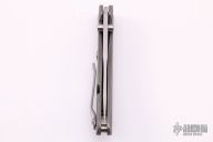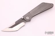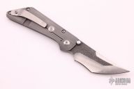 This Persian Perversian by Rip Knives features a two-tone finished blade with dual thumbstuds. The handle has a bark finished titanium frame with a tumbled tip up clip. Rides on bearings, nice detent, lockup and blade seating. Comes with zippered case and COA. New from maker at the 2021 CCKS.