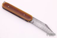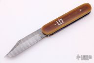 "Ever since I can remember I have had a fascination with knives. My grandfather gave me my first pocketknife when I was 5, and it was that moment that did it. I started making knives by taking apart my mothers kitchen knives. My parents thought that there was something "wrong" with me because I had a fascination with sharp objects. That all changed when I took them to a local knife show and showed them a whole room of people interested in knives. I seriously began making knives when I was 16. I have been making knives for over 25 years. For the past 10 years I have mainly concentrated on making folding knives and automatics. I mainly concentrate on making one-of-a-kind folding knives of my own design, but I do occasionally make a few fixed blades. I specialize in unique file work patterns, and I also do simple carving and some of my own sheath work. For steels I mostly use Damascus, but also use 154CM, CPM154, D-2, 1095, W-2 and others. Handle materials include Exotic Woods, Stag, Pearl, and various types of Ivories including Elephant, Mammoth, and Walrus. As far as knife builds go, I think I am going to concentrate on building more elaborate autos as well as converting some of my older designs into autos. I appreciate the challenge of making an auto, and it keeps knife making exciting for me.”
