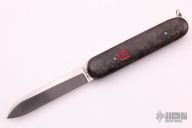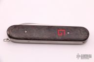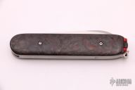 This Switch Army Switchblade by Chuck Gedraitis features a satin finished blade with false top edge. The handle has black/red Dark Matter carbon fiber scales, orange peel finished titanium liners, orange peel finished stainless steel backspacer with lanyard hole. Has tweezers and toothpick like a Swiss Army Knife. Nice action, lockup and blade seating. Comes with a zippered case and COA. New from maker at the 2021 CCKS.