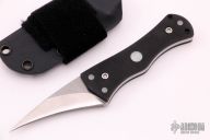 This Cock Spur by John Gray features a hawkbill blade with nice buff line on the blade edge, .165" blade stock and 1.171" blade depth, full tang construction with black G-10 scales that have moonglow inlays. Comes with a kydex sheath with Velcro loop. New from maker at the 2021 CCKS.