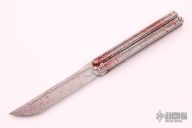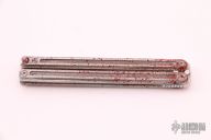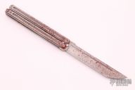 This Parabellum Large UC Balisong by Darriel Caston features a blood splatter coated blade with a false top edge. The handle is composed of blood splatter coated titanium. Includes original box. New from maker at the 2021 CCKS.