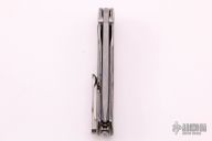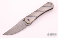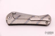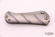 This SBKF by Borka Blades features a stonewash finished blade with dual thumbstuds. The handle has a flamed titanium frame with a matching tip up clip. Nice detent, lockup and blade seating. Comes with zippered case. Excellent condition.