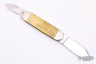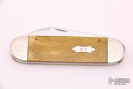 This Elephant Toe slipjoint by Case Knives has two mirror polished blades with nail nicks. The handle has engraved nickel silver bolsters, antique bone covers, brass liners and pins, stainless steel spring. Has a few light scratches, otherwise excellent condition. Comes with original box and papers.