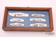 This set of 6 "US Wonders" knives by Case include these models with original boxes and papers along with a wooden display case. All in excellent condition.