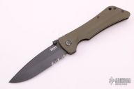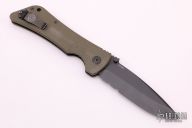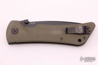 This Bad Monkey Linerlock folder by Southern Grind features a black drop point partially serrated blade with dual thumb studs and a notched thumbrest. Handle has OD Green G10 over black titanium liners and barrel spacers, black stainless steel tip up clip, and lanyard hole. Includes original box and papers, box is a little beat up. Excellent condition.