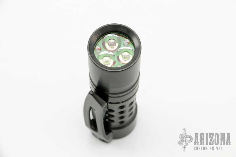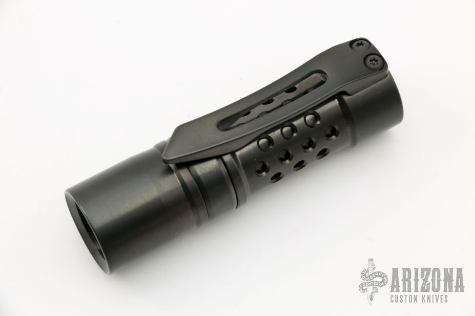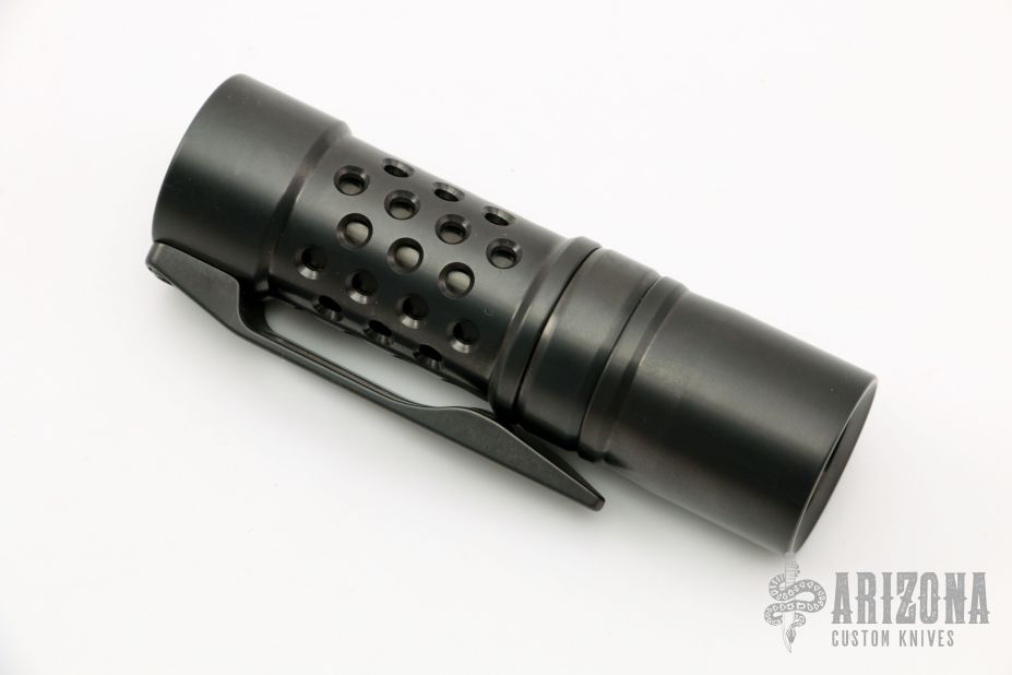 This classy light from The Barrel Flashlight Company features a DLC titanium body, ring sleeve, and 3D milled clip. From the makers site: Barrel Flashlight Co. flashlights are proudly made in USA. Our lights are turned from solid round bar. About 1000 lumens on high depending on LED’s selected Triple LED output with builds with Cree XP-L HI 5K. The “ pill “ that houses the LED’s and driver is machined from solid for optimum performance and heat transfer. Light measures 3.5 inches long and just under 1 inch in diameter. Light runs on an Efest high capacity 700mAh 16340 unprotected button top rechargeable IMR battery (not included). Interchangeable barrel rings, barrels ( inner sleeve), clips, and screws to customize your light and ability to match your EDC. Light is built with one of the most advanced drivers on the market: the fully programmable H17F with battery monitoring. The H17F comes in a very user friendly set default of moonlight, low, medium, and high. Rear “ clicky “ button cycles light through modes. For the avid flashlight hobbyists , a secret hidden mode can be entered to program the light. Light is water resistant. Light tailstands very well. Comes with original box, packaging, and signed/dated certificate of authenticity dated 04/19. Has some light scuffs otherwise excellent condition.