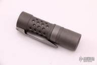 This classy light from The Barrel Flashlight Company features a bead blast titanium body, ring sleeve, and 3D milled clip. Glow Gasket installed. From the makers site: Barrel Flashlight Co. flashlights are proudly made in USA. Our lights are turned from solid round bar. About 1000 lumens on high depending on LED’s selected Triple LED output with builds with Cree XP-L HI 5K. The “ pill “ that houses the LED’s and driver is machined from solid for optimum performance and heat transfer. Light measures 3.5 inches long and just under 1 inch in diameter. Light runs on an Efest high capacity 700mAh 16340 unprotected button top rechargeable IMR battery (not included). Interchangeable barrel rings, barrels ( inner sleeve), clips, and screws to customize your light and ability to match your EDC. Light is built with one of the most advanced drivers on the market: the fully programmable H17F with battery monitoring. The H17F comes in a very user friendly set default of moonlight, low, medium, and high. Rear “ clicky “ button cycles light through modes. For the avid flashlight hobbyists , a secret hidden mode can be entered to program the light. Light is water resistant. Light tailstands very well. Comes with original box, packaging, and signed/dated certificate of authenticity dated 01/18. Has some light scuffs otherwise excellent condition.
