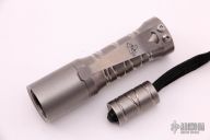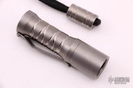 Deadwoods Custom Works Huckleberry Flashlight tumbled titanium finish. 5k green dragon. Comes with original box and papers. Includes a matching bead. Has some light scuffs, otherwise excellent condition.