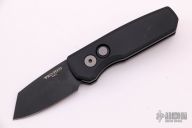 The Runt 5 by Pro-Tech Knives features a black sheepsfoot style blade.  The handle features a black aluminum handle with a black tip up stainless steel pocket clip.  New from maker at the 2021 CCKS.