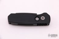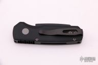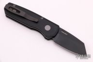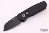 The Runt 5 by Pro-Tech Knives features a black sheepsfoot style blade. The handle features a black aluminum handle with a black tip up stainless steel pocket clip. New from maker at the 2021 CCKS.