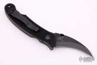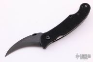 This Elvia by Emerson Knives features a black hawkbill blade with thumbdisc. The handle has black G-10 scales, titanium liners and a black stainless steel tip up clip. Comes with original box and papers. Excellent condition. #0668
