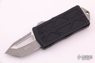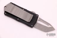 This Microtech Exocet features an apocalyptic finished tanto blade. The handle is comprised of a black aluminum handle and a stainless clip that doubles as a money clip dated 04/2021 S/N 15963. Comes with original box and papers. Excellent Condition.