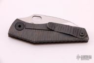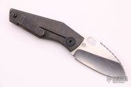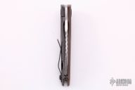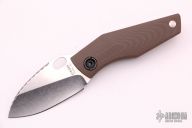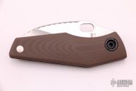 This SJ75 Baby Huey framelock folder by Strider Knives has a tumble finished blade and a coyote brown G-10 and flamed titanium frame with tip up titanium clip. File work on blade spine and inner edges of frame along the spine. Has some scuffs on the frame, otherwise excellent condition. Nice detent, lockup and blade seating.