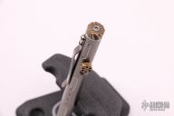 "I am a folder maker. While there will always be the occasional fixed blade, folders are my passion. The steels I enjoy working with include CPM154, ATS-34, 440C, S30V, and Stainless Damascus from Devin Thomas. All of the metal parts on my knives that can be Titanium are Titanium including frames, liners, thumbstuds, bolsters, clips and spacers. Pretty much everything except for the blade. I often anodize a substantial portion of my titanium, and can get a deep green that few makers succeed at. As far as handle materials go, I mostly use Carbon fiber, G10, or Micarta. I use large bronze pivot bushings in all of my folders, and either Nylatron or Bronze washers. All of my parts are made in-house except the screws. I have an old Bridgeport Mill, an older Logan Lathe (1943), a Hardcore grinder, and various other tools, lots of them made by myself. I also do all of my own Heat treating in an EvenHeat Oven." My knives have won several major awards, including Best Tactical Folder at the Blade Show 2011.