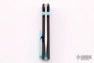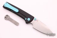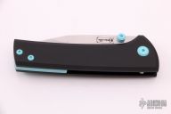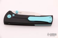 This Chaves Scapegoat features a satin finished drop point blade with the Chaves logo and dual thumbstuds. The handle has a black titanium frame and a skull pocket clip. Has custom cerakoted hardware and handle. Includes an interchangeable titanium clip and original box. Excellent condition.
