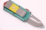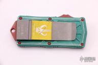 This Microtech Exocet features an apocalyptic finished tanto blade. The handle is comprised of a distressed green aluminum handle and a stainless clip that doubles as a money clip dated 12/2020 S/N 402. Comes with original box and papers. Excellent Condition.