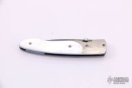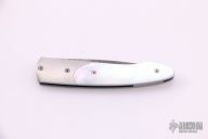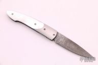 "The original classic William Henry's first design still going strong more than 10 years later. The Lancet defined, and continues to define, the essential gentleman's folder in the modern world. Sleek, elegant, refined, and comfortable in the hand and to the eye. Like many of our designs, the Lancet offers maximum flexibility and utility simply an exceptional daily carry tool, worthy of virtually any cutting task that comes along. Winner of multiple industry awards, in a variety of iterations over the years, the patterns shown here are all new limited edition offerings continuing the Lancet's legacy in fine cutlery." This Lancet linerlock folder features a Damascus blade, nickel silver bolsters, anodized titanium liners, mother-of-pearl scales. Numbered 38 on interior. Includes original box and paperwork. There are a couple light scratches on the frame, otherwise good condition.