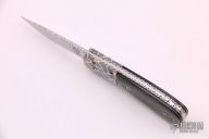 "I have been making knives since 1973 and have been a voting member of the Knifemakers Guild since 1976. Membership in the Knifemakers Guild was one of the highlights of my life, and I am constantly trying to upgrade the quality of custom made knives. I've been a dentist in private practice since 1962, and working with my hands and concentrating on detail has been my way of life. Utilizing many of the same skills, knifemaking offers me the ultimate in creative expression. All of my knives are completely handcrafted. Folders have become my specialty, however I enjoy making all types of knives, including special designs that suit the particular needs of the customer. Natural handle materials are my preference... the more exotic the better! The steels I use are 440C stainless and Udeholm UHB stainless. Heat treating is done by me in my own controlled-atmosphere oven. I have been forging blades since 1982. I make both 01-mild Damascus and 10/70 spring steel nickel Damascus. I guarantee my forged blades will not break."