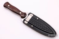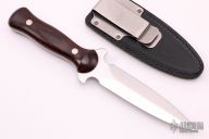 This Airforce Issue boot knife by Western Cutlery is Pre-Coleman, it has a double edged satin finished blade with .108" blade stock and .984" blade depth, full tang construction with wood scales and nickel silver pins. Comes with a hand tooled brown leather boot sheath. Has some scratches, otherwise good condition for its age.