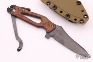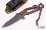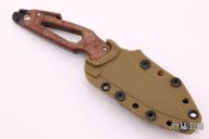 The Delta fixed-blade model is a rugged, lightweight combat/utility knife perfect for virtually any mission. Like its folding cousin, the Delta fixed features a Crucible CPM® S30V® steel blade, renowned for strength and edge retention, only its blade is coated with a layer of rust-proofing to protect it from corrosion. The frame incorporates many of the same practical tools as the folder-screwdriver, cord/belt cutter, and self-seating wrench-but also sports a cutter that cuts through 12-gauge wire and the flex-cuffs used in many military and law enforcement applications. Micarta™ grip scales cover its steel grip/tang for a secure hold in your hand, and an injection-molded sheath maintains a secure hold of the knife when not in use. Comes with original sheath. Has some scuffs and scratches otherwise great shape.