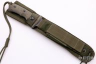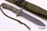 "This knife is known to the U.S. Army Special Forces as "The Yarborough" and to everyone else as "The Green Beret Knife". It is a no-nonsense, hardworking tool, designed by renowned knife maker and designer Bill Harsey, with function and manufacturing input from Chris Reeve. Made in Boise, Idaho by Chris Reeve Knives, the Green Beret Knife is a using knife that, just like the men for whom it was designed, is efficient, tough and uncompromising." Includes a green Black Hawk Sheath. Excellent condition.