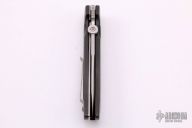 This TTF-3A by Bob Terzuola features a bead blasted spear point blade with notched thumbrest and thumbdisc. The handle has carbon fiber scales, bead blasted titanium liner, black linen micarta backspacer and a tip up titanium clip. Nice detent, lockup and blade seating.  Includes a padded zippered case. Light scratches are visible on the pocket clip otherwise the knife is in excellent condition.