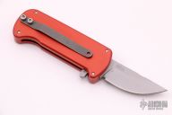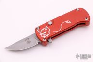 This mini Millennium OTF by Rob Dalton has a bead blast blade and milled anodized aluminum frame with a bead blast titanium tip down clip. Strong and fast coil-spring opening. Excellent condition.