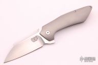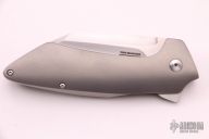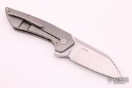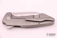 This Alien by Tashi Bharucha features a hand rub satin finished blade with flipper. The handle has a bead blasted titanium frame with matching backspacer and tip up clip. Nice detent, lockup and blade seating. Comes with zippered case. Has a couple light scuffs, otherwise excellent condition.