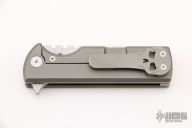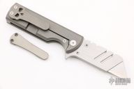 The CHUB (Chaves Handy Utility Blade) Flipper from Ramon Chaves features a replaceable utility blade. The handle has a black G-10 scale, stonewashed titanium frame and a reversible titanium skull pocket clip. Comes with the original box and an extra titanium pocket clip.  New from Maker!