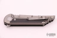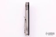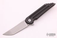 This UHEP frame-lock flipper by Jake Hoback has a stonewashed upswept/tanto blade, notched thumbrest and flipper. CBP caged bearing pivot. Handle is carbon fiber and titanium with carbon fiber inlay on the lockside, stonewashed titanium tip up clip and backspacer, clip is reversible left or right. This knife has an adjustable detent. Nice detent, lockup, and blade seating, and flips like a boss. Knife is in excellent condition and shows no signs of use. Comes in original box with COA. Excellent condition.