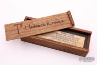 Jake Hoback had a variety of jobs and experiences before turning to full-time knife making and becoming a prominent figure in the industry. He studied and worked as a fish and wildlife scientific technician, was a machinist at a turbine engine company, and fabricated rock-crawling 4x4s. Jake started creating knives in 1990 in his back yard, pounding them out on a huge chunk of steel with a framing hammer and fence post nails. By 2003, Jake had sold his very first knife, and in 2009 started making knives full-time from his workshop in Northern Idaho. Jake has learned many techniques and skills from other knife makers throughout the years, but his initial work was completely self-taught. Jake’s knives are known for many innovative features, including the Hoback Roller Detent (HRD), internal lightening pockets, hardened stainless lock inserts, hardened bearing races, and smooth blade movement with no blade play. Jakes specializes in folding and fixed blade knives; but he especially enjoys the thought, design, and engineering that goes into folders.