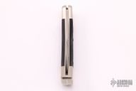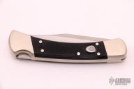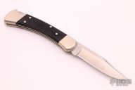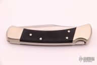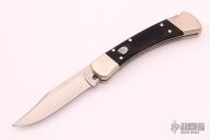 This Buck 110 Auto features a satin finished clip point blade. The handle has a nickel silver frame with black G-10 scales. Comes with original box, papers and sheath. Excellent condition.